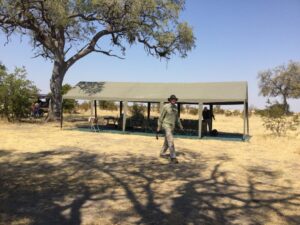 Lunch and Dinners are served under a large Mess tent 12m x 6m. This tent is the central part of the camp with easy access from all the tents. Early morning breakfast is usually served by the fire, and is a light affair. The Mess tent doubles up as a bar, with selection of Gin tonics, chilled wines and beer. There is tea station in the mess tent all day long, for tea lovers.